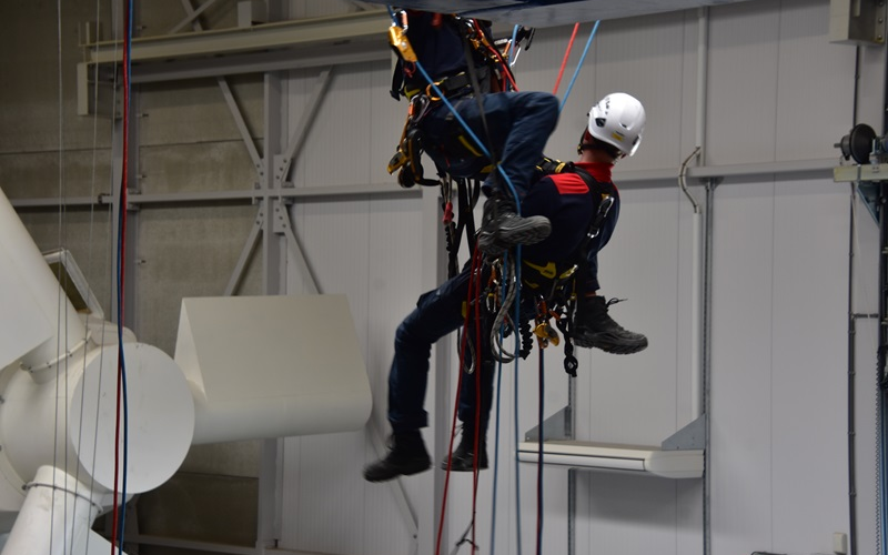 Gebruik bij het werken op hoogte altijd een klimhelm met kinband, om hoofdletsel bij een val te voorkomen!